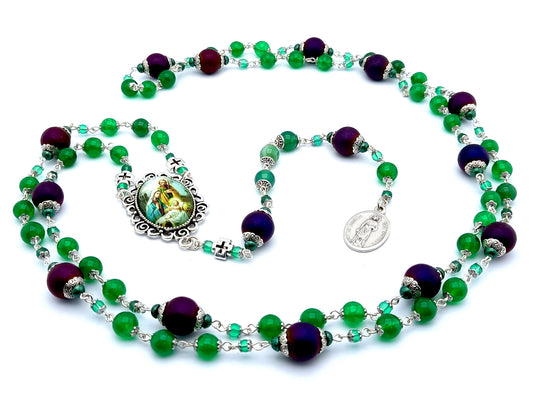 Our Lady of charity onyx gemstone single decade pocket rosary beads with Saint Joseph medal.