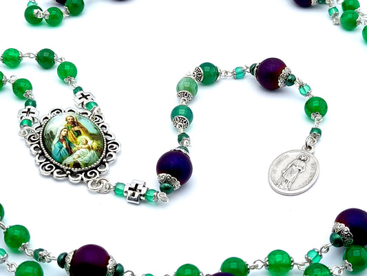 Large God The Father gemstone prayer chaplet with Holy Octave of Consecration medal and gold crosses.