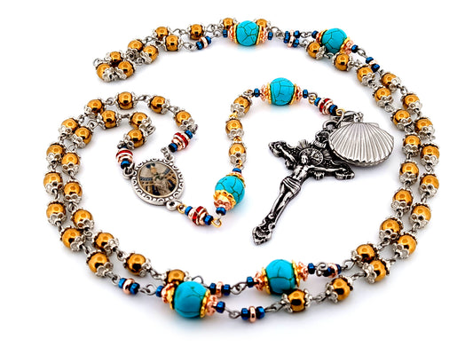 Saint Michael stainless steel single decade rosary beads with stainless steel Saint Benedict crucifix.