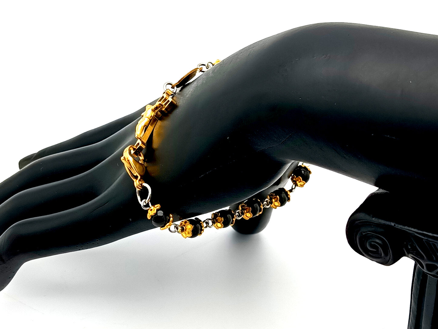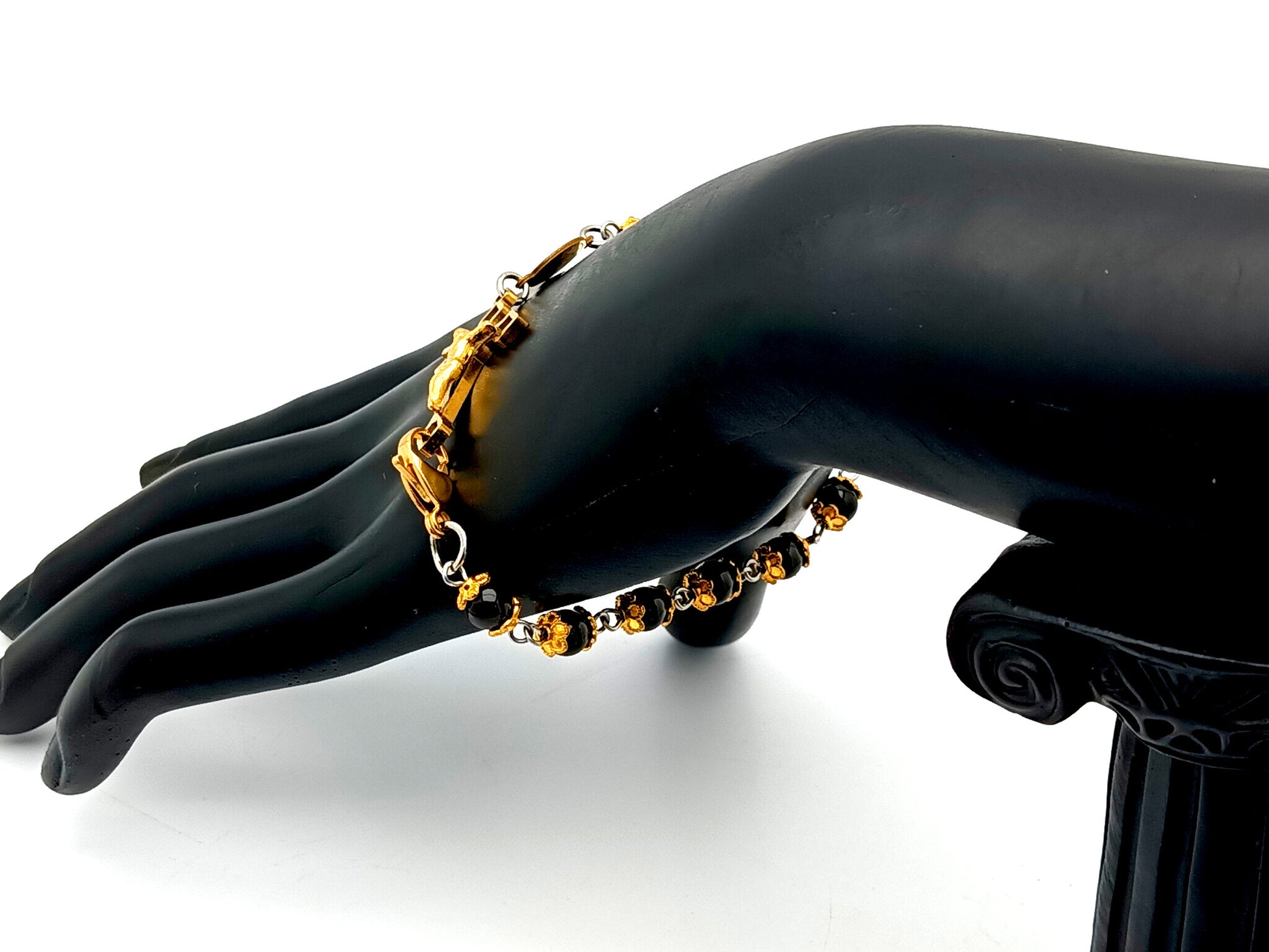 Hail Mary beads: 6mm onyx gemstones with gold plated bead caps.