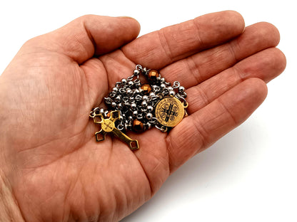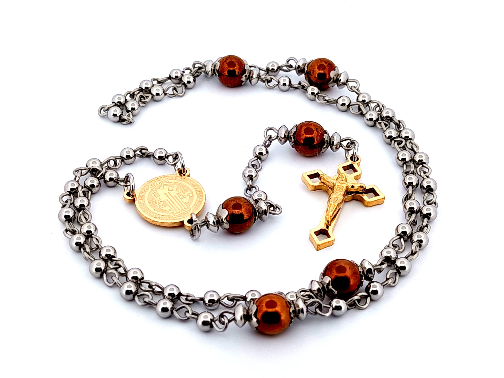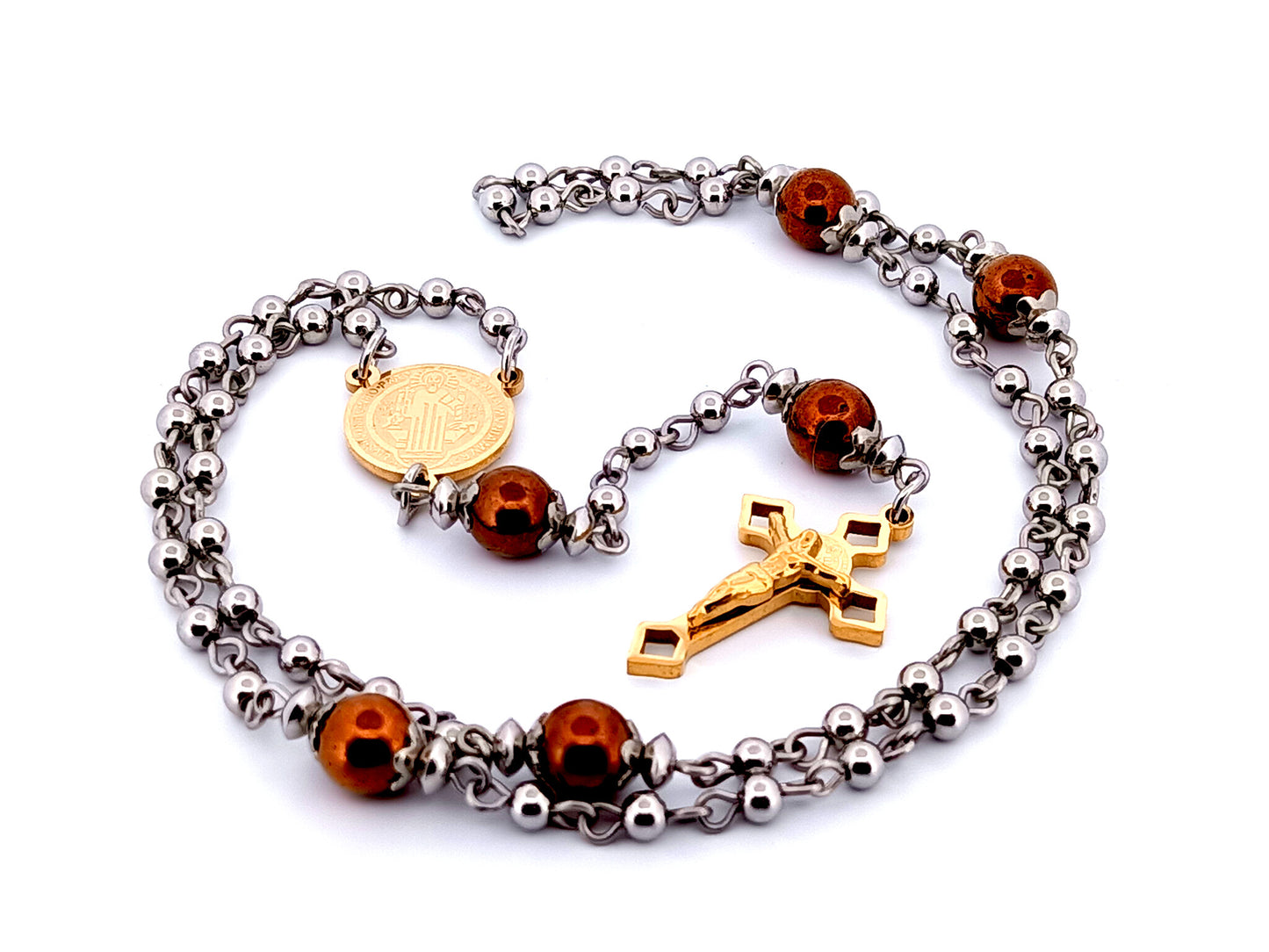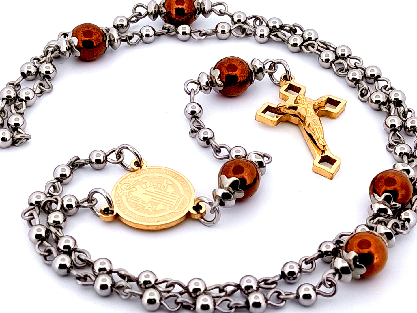 Centre medal: Gold plated stainless steel Saint Benedict medal center.